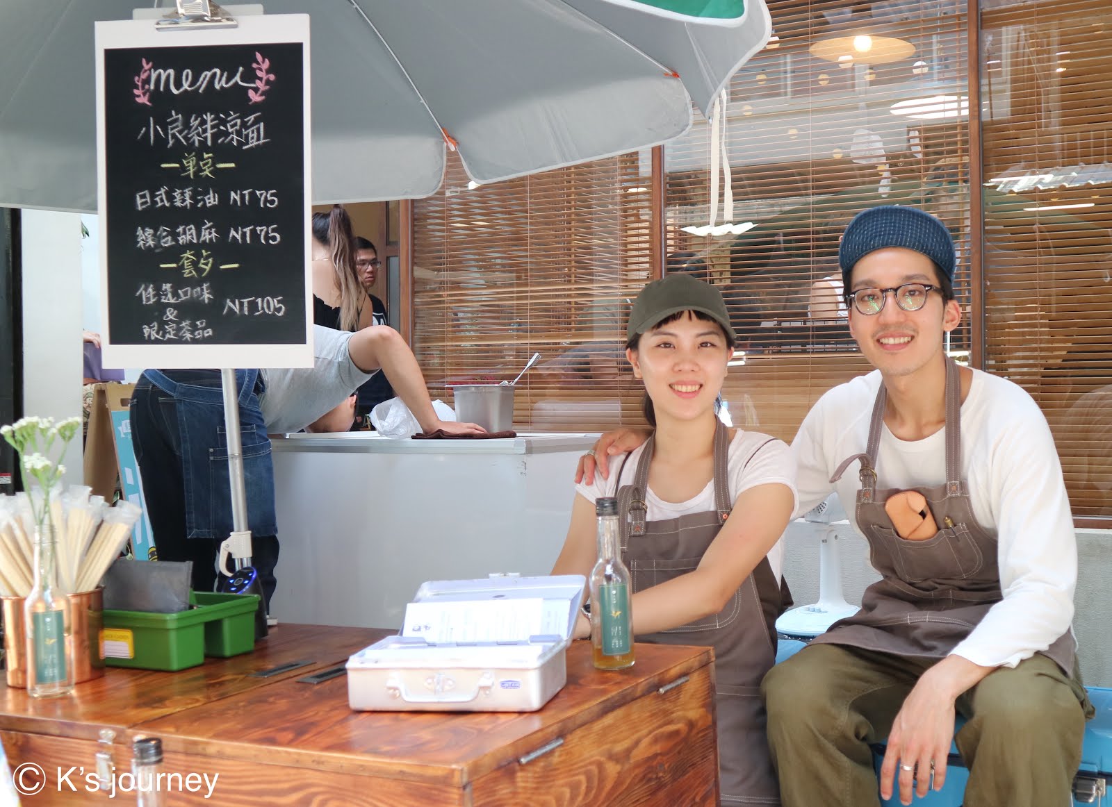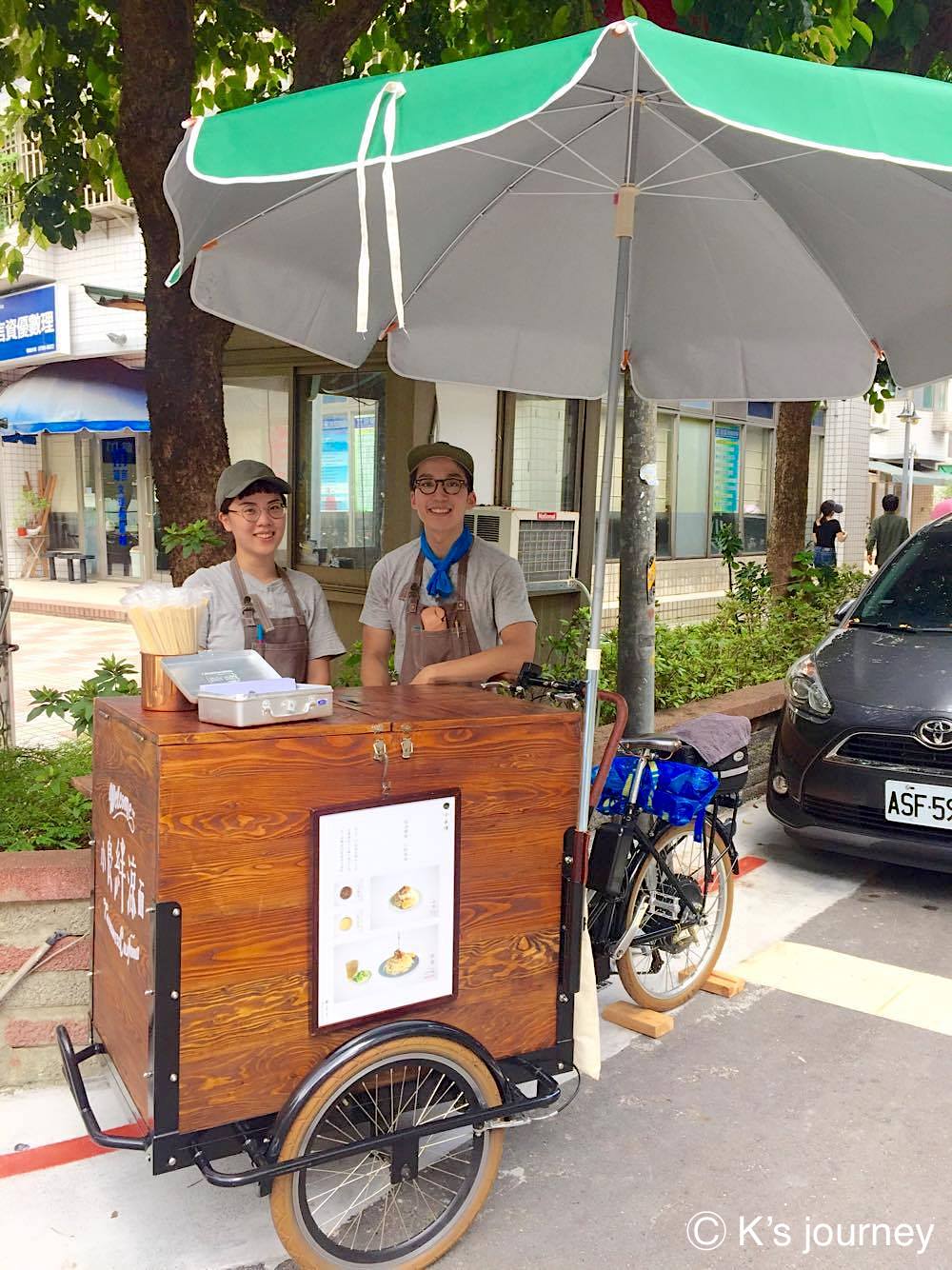 某日中午和同事正煩惱吃什麼的時候,在路邊看見一台由腳踏車改裝的小攤車和穿著圍裙的情侶檔。全身上下飄著文青味的Nick和郭郭,親切地為我們介紹「小良絆-涼面」。