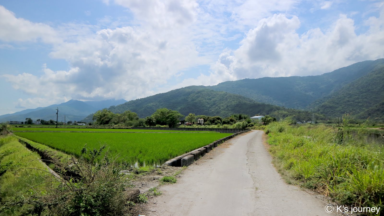 回頭看著荒涼的馬路,來不及後悔,畢竟已經走了一大半了!!!大概是透中午熱爆了加上肚子太餓作祟,突然,我覺得好害怕,『等一下會不會有人衝出草叢?』、『會不會中暑暈倒在這裡?』、『如果遇到不受控的野狗怎麼辦?』、『會不會有司機經過搶劫?』面對陌生環境,內心小劇場開始出現許多OS,緊張的步伐踏得越來越快,即使眼前是美麗的花東縱谷也無心欣賞了!