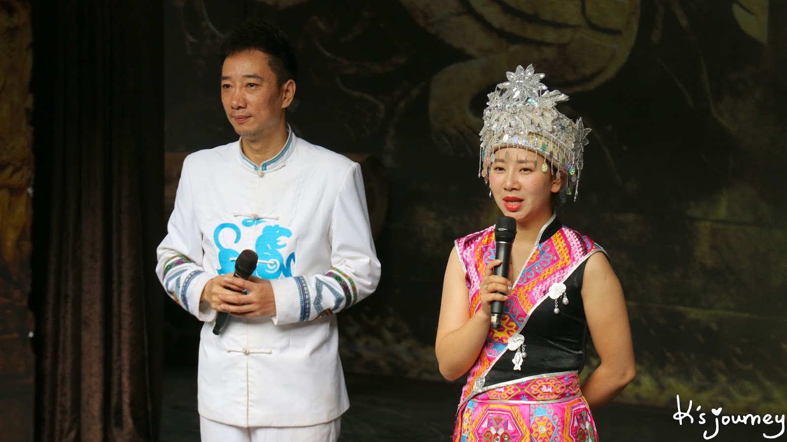 除了幺哥幺妹(當地對年輕男女的稱呼)的歌舞表演,主持人還會邀請觀眾上台唱《六口茶》,恩施傳唱度最高的(把妹)山歌。內容大概就是男生搭訕女生,雙方曖昧在調情: