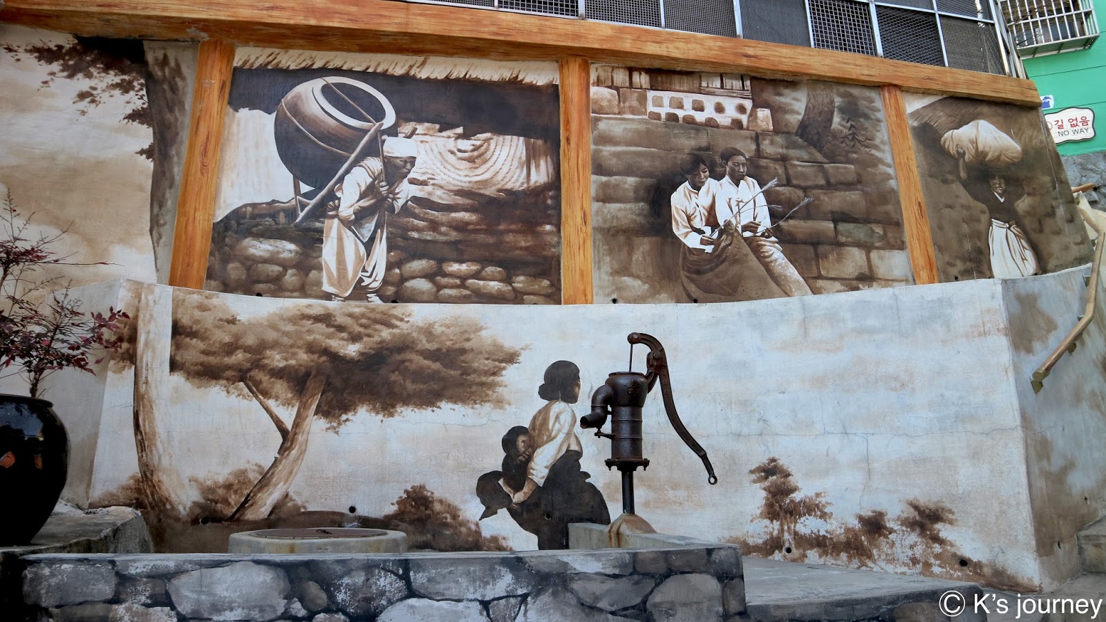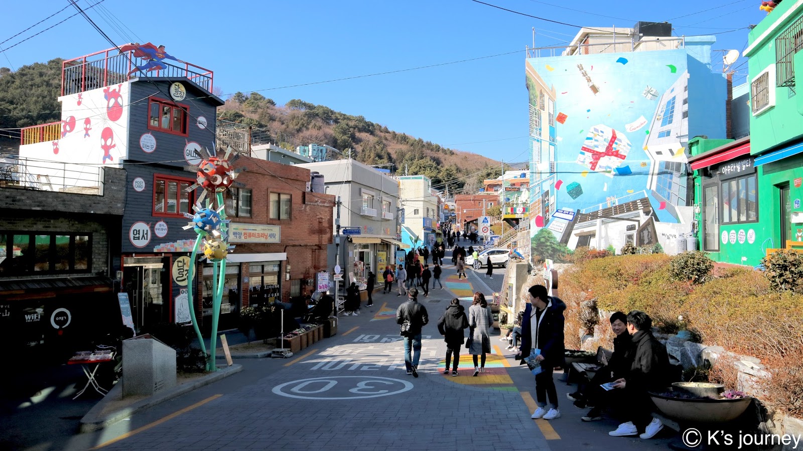 甘川洞文化村可以慢慢玩,這裡的裝置藝術和壁畫非常多。當天不知是否因天氣關係,我的相機電池竟然一下子就沒電了,可惜還有很多驚喜沒辦法分享給大家。不然,換你們下次拍給我看好了!至少拍個小王子的正臉回來…(嗚嗚嗚覺得殘念)