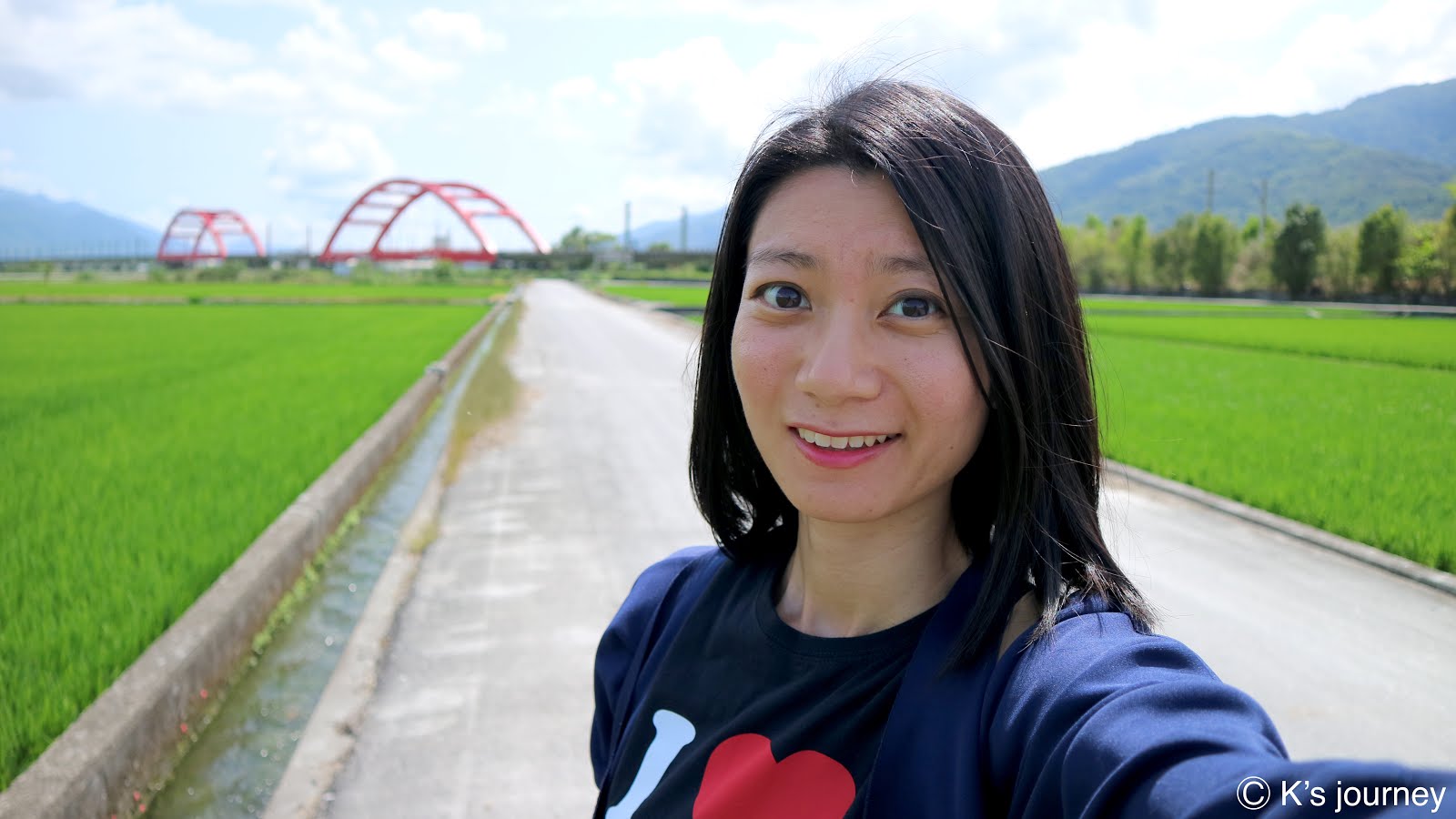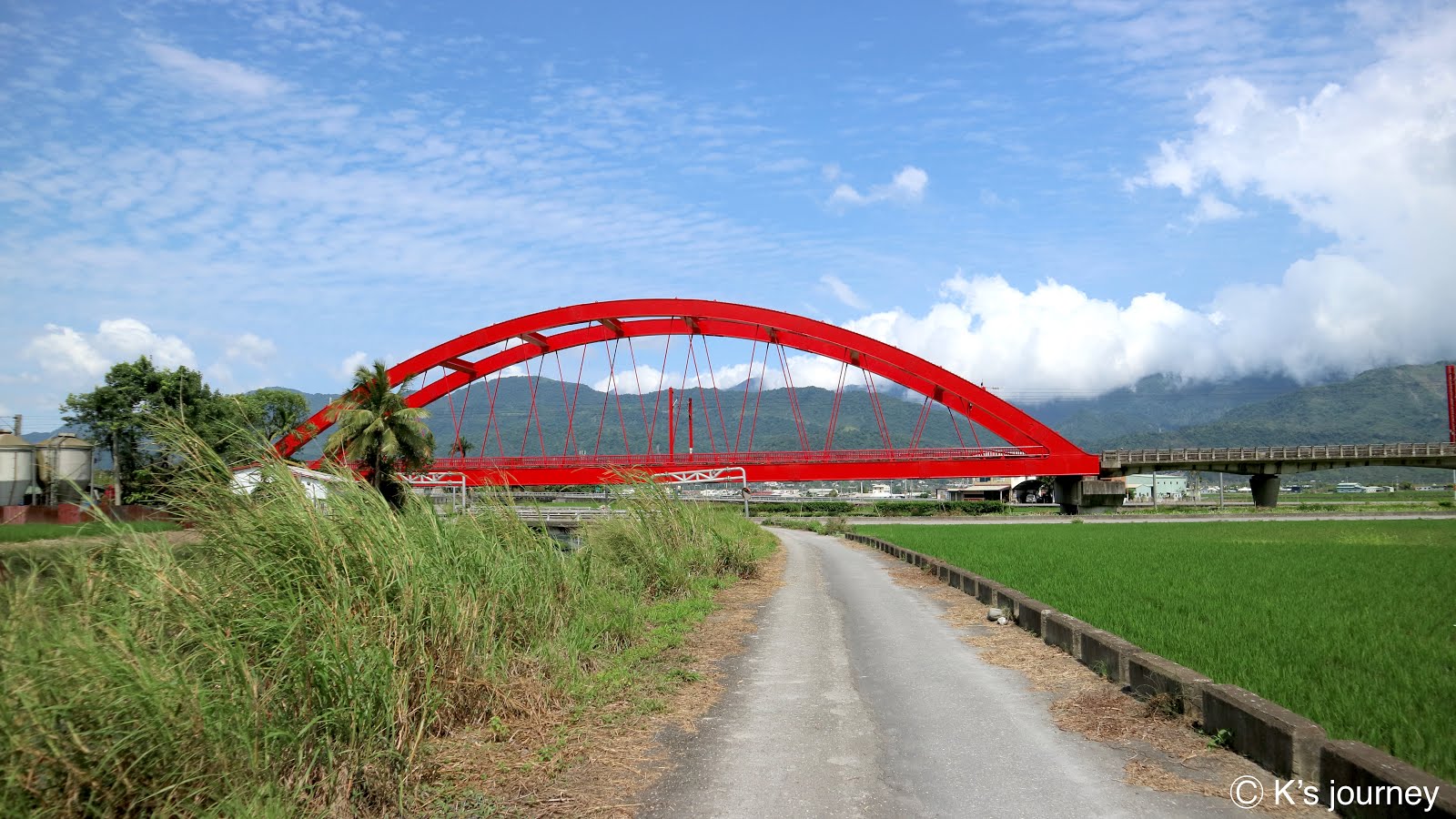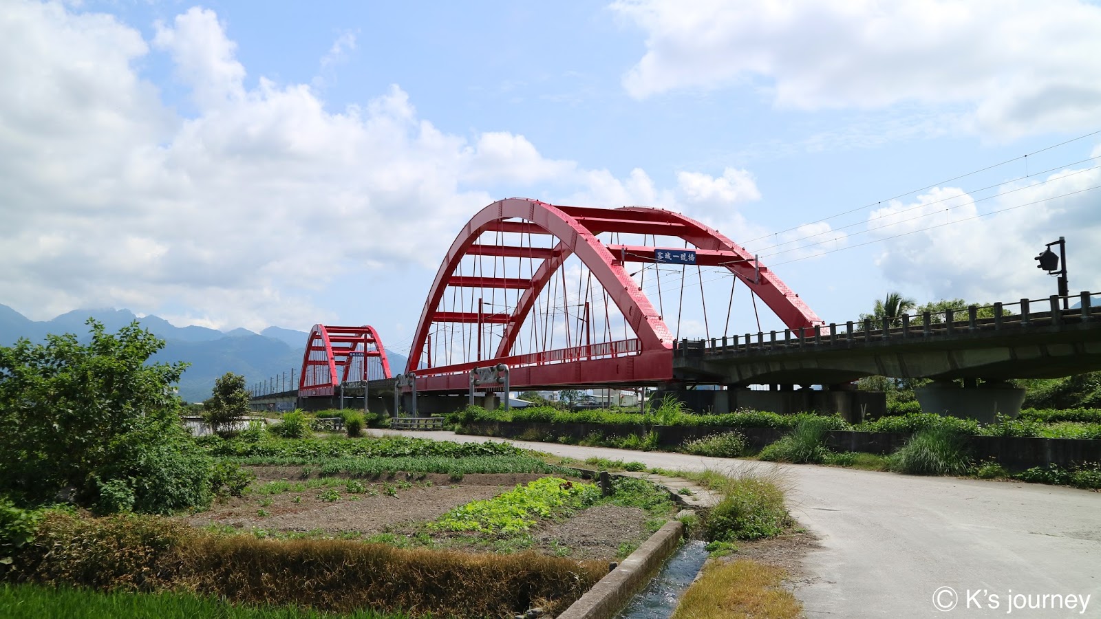 終於看見紅色鐵橋了!但這下變成太高估自己的智商,走在鐵橋旁,頓時恍然大悟,網路上的美照都是遠遠拍攝的呀!我離橋這麼近,根本拍不到兩座橋的全貌啊!!!望向遠遠的田間小路,真的好崩潰,實在不想再往裡面走下去了!隨便拍了幾張後,我決定趕緊離開這個X地方。