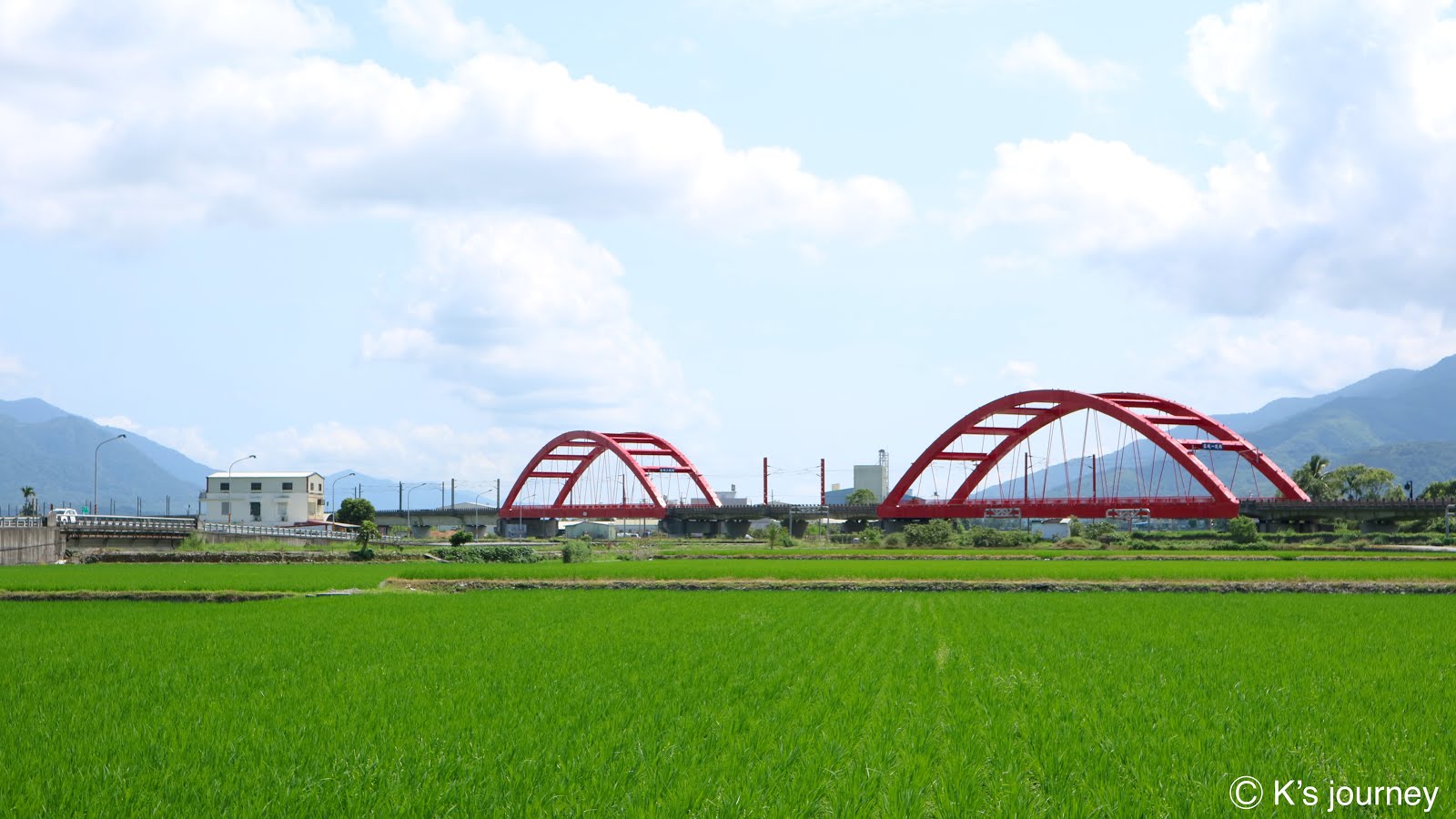 在沒有做任何功課的形況下,還能拍到火車穿越紅色鐵橋的經典畫面是何其幸運。深吸一口氣,現在的我,才願意真正打開心胸去感受眼前的景物!對不起,花東縱谷,現在才認真欣賞妳的美!