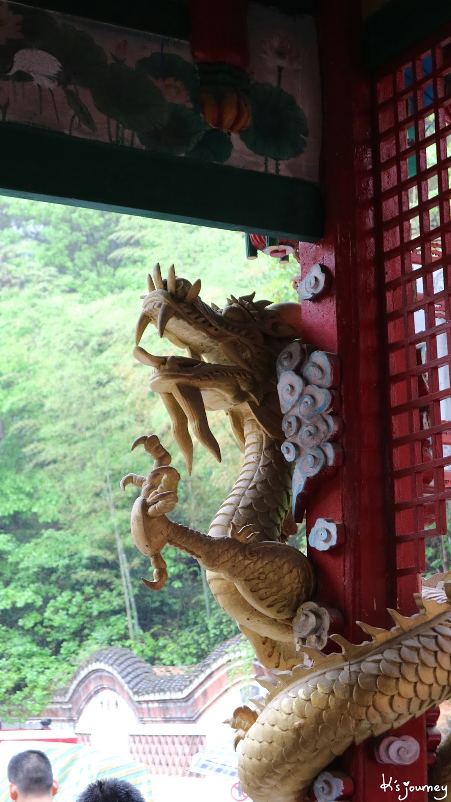 | 屋內有很多龍的雕像。 |