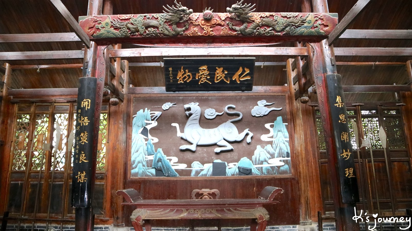屋內有很多龍的雕像。 |
