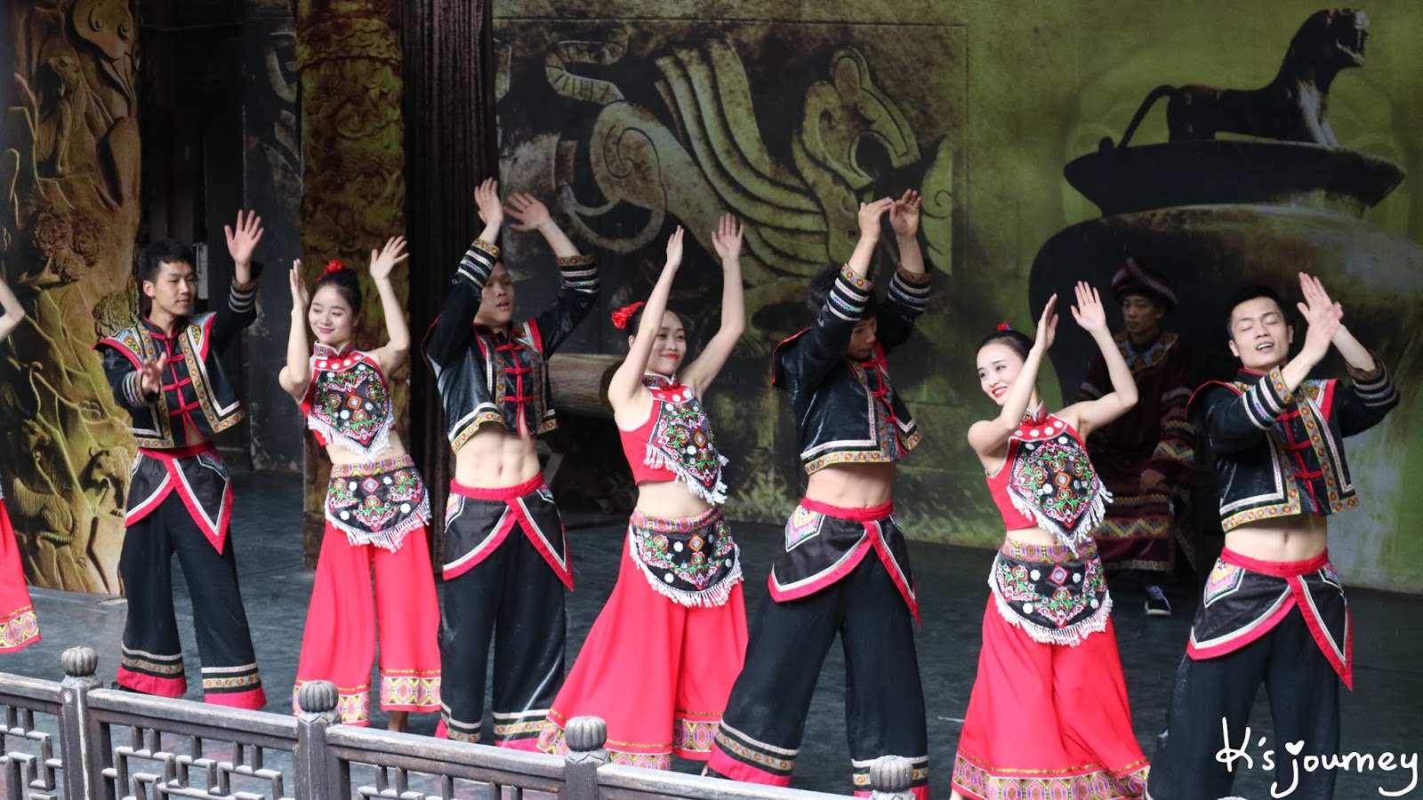 遊客可在戲台看土家歌舞表演,個人覺得比前一晚在女兒城的還精彩,現場互動佳。