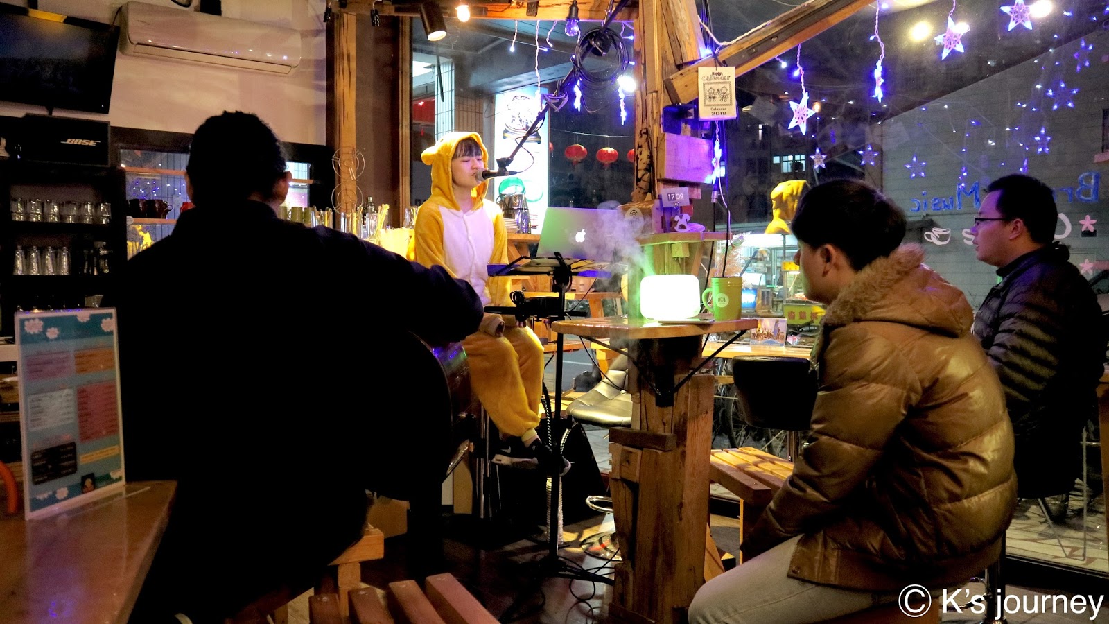 在大家的熱情邀請下,KK很不要臉的獻上駐唱歌手處女秀,從沒想過自己也有這一天,還有專業吉他手現場伴奏,實在太害羞了!但謝謝1709給了我做夢的勇氣!