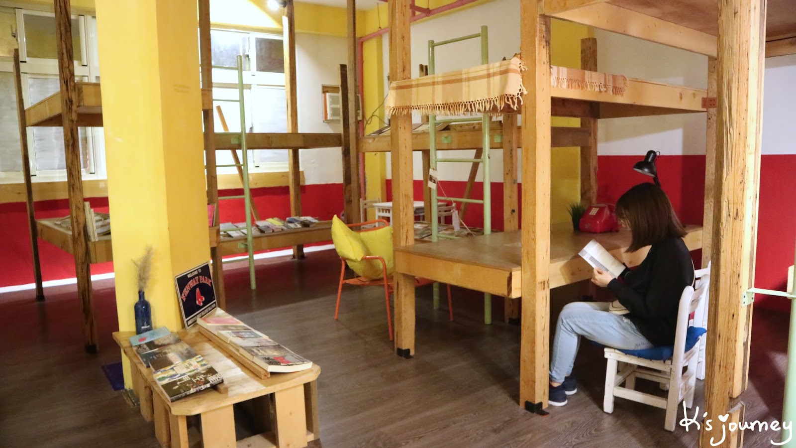 二樓則打造「漫漫書旅」休憩讀書空間,上下鋪搖身一變成了書架和書桌,安靜舒適的空間就跟花蓮給人的感覺一樣,既療癒又暖心。如果大家有來,一定要上樓啃一本書!