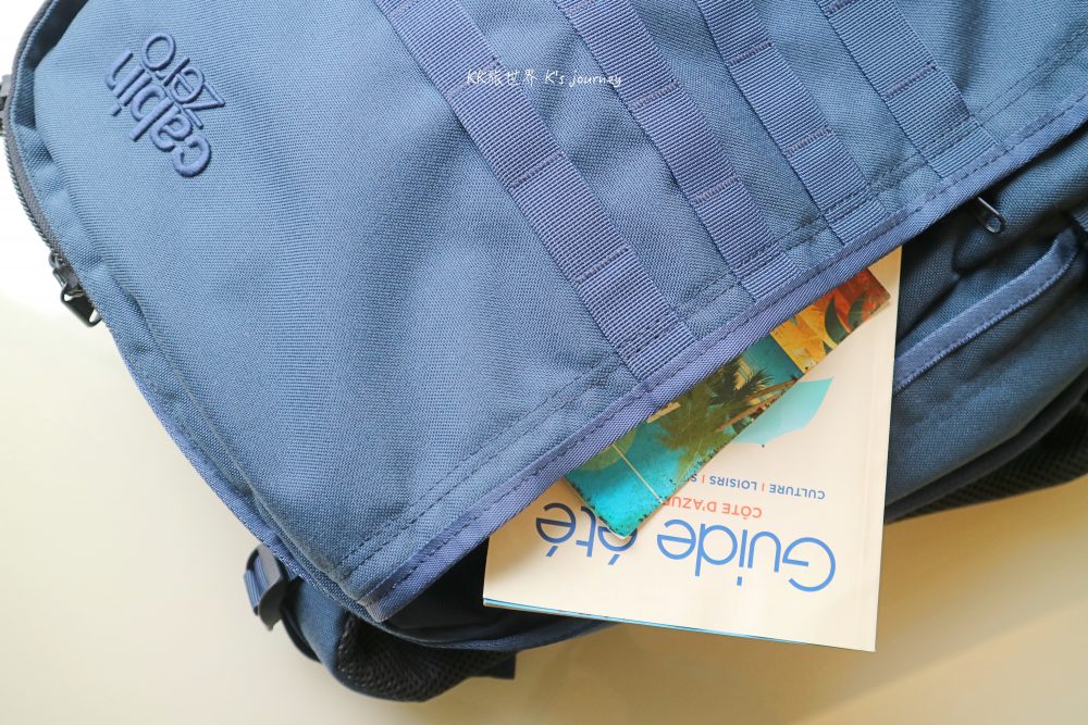 CabinZero輕旅登機後背包內有筆電安全夾層,滿足我出國需要攜帶筆電的需求。36L大小的話,是17吋以下筆電都放得進去。