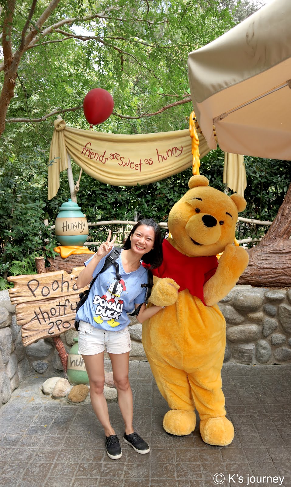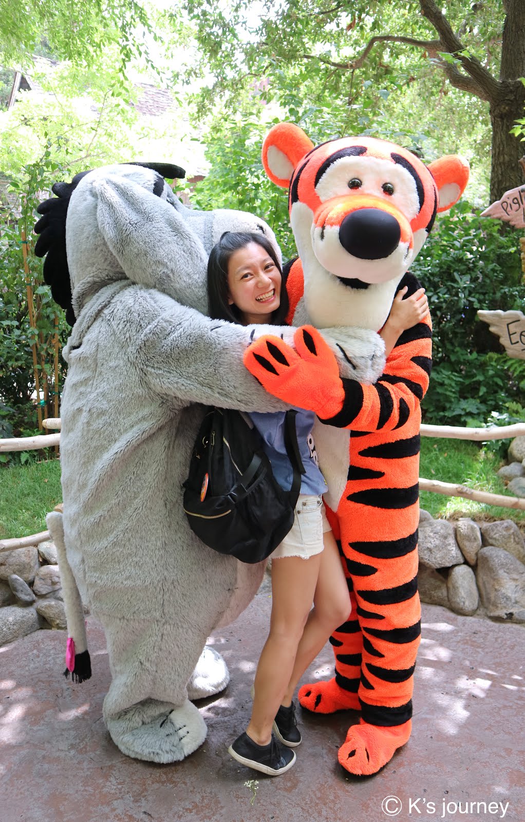 沒想到結束後,還野生捕獲到維尼和他的好朋友!跳跳虎和很衰的驢子是我在迪士尼的第一拍!這一對實在太有趣了!舉手投足總是能逗得大家哈哈大笑!熱情大擁抱,瞬間讓我的心智年齡降低到3歲。有點明白為什麼剛才那位金髮女孩會如此激動了。