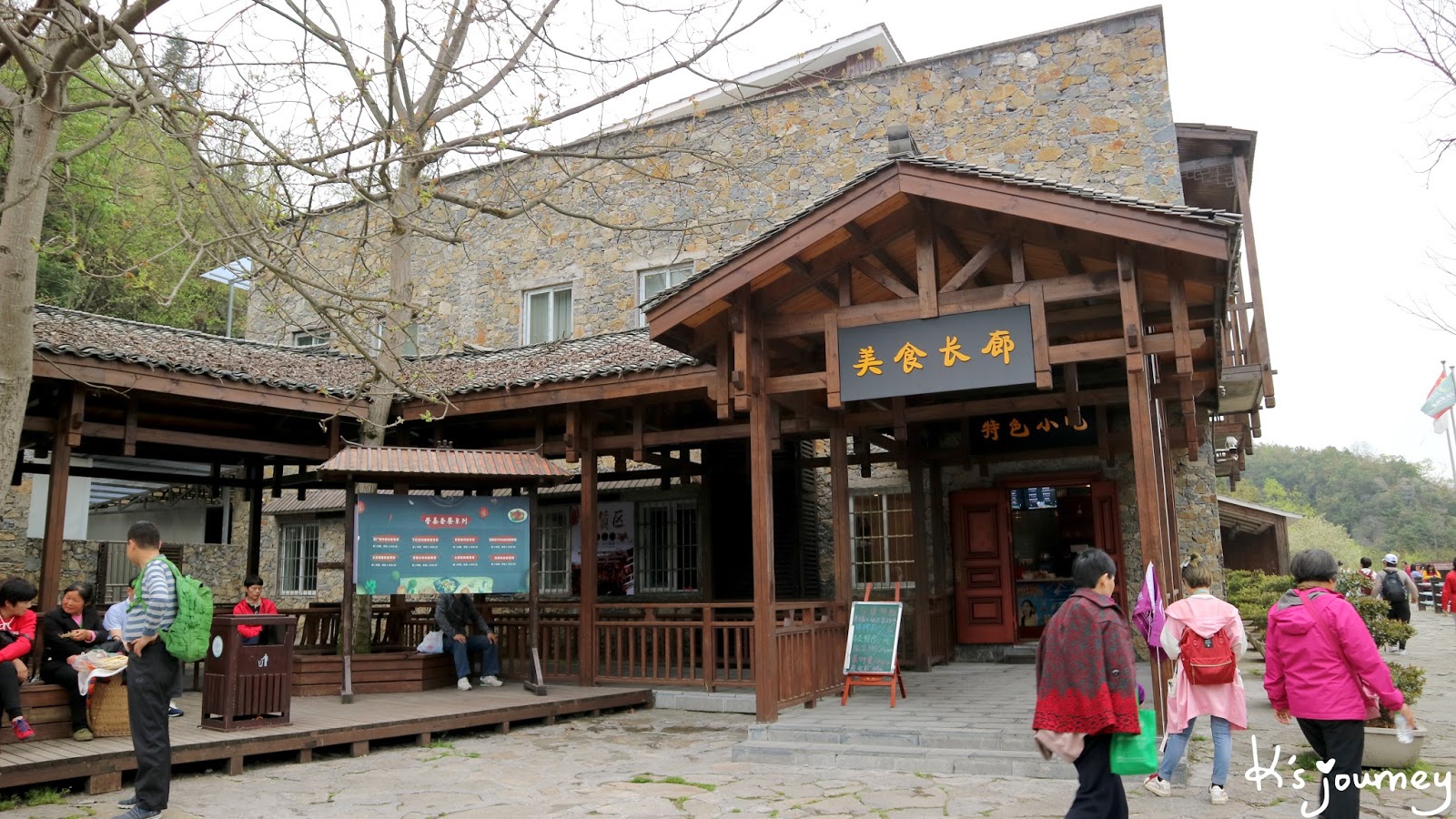 沒錯,我們要搭乘纜車前往七星寨景區。導遊說要越過兩個山頭才到用餐的地方,但我中途實在忍不住,先買了玉米補充硒元素!不過玉米粒沒有水份,好硬好難吃,不知道是否每家賣的都這樣,總之買到地雷。