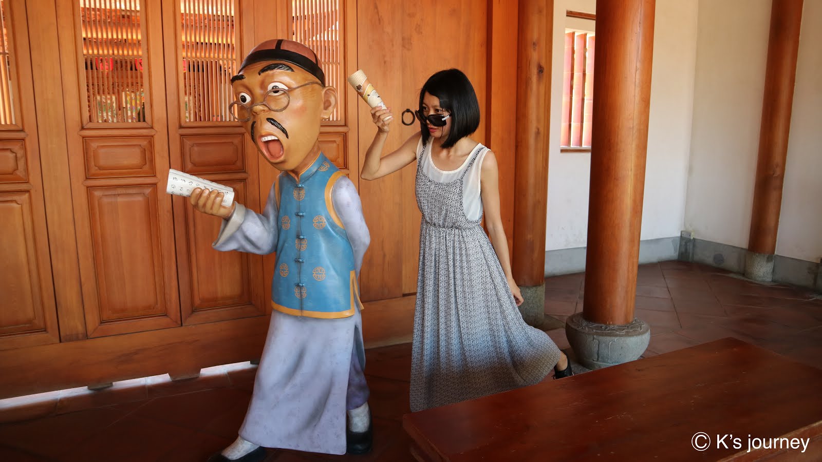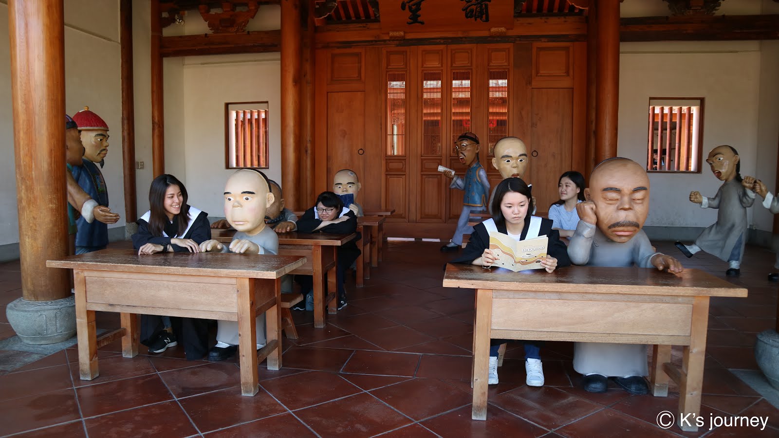 台灣書院從雍正、乾隆之後迅速成長,而鳳儀書院是台灣現存年代最早,也是規模最大的書院。修復後呈現原有風貌,復古的Q版人偶添加童趣感,即使頂著大太陽,也讓我這個觀光客拍下許多照片!