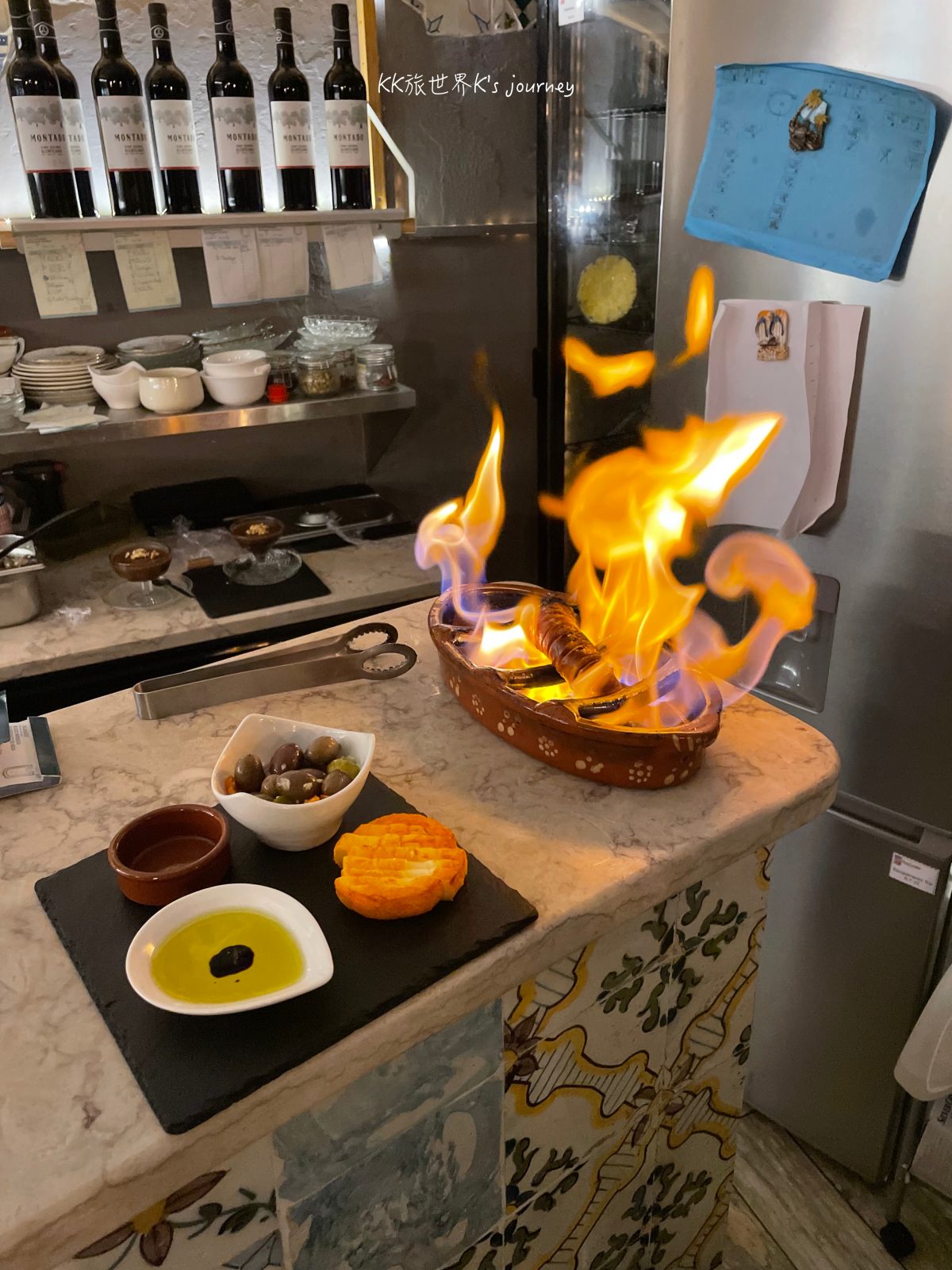 吃到這份烤香腸,瞬間有回到台灣熱炒店的錯覺!不過他們的香腸是直接放在瓷盤上,倒油點火,大火瞬間噴發,第一次看到這種炙烤方式,看了傻眼。