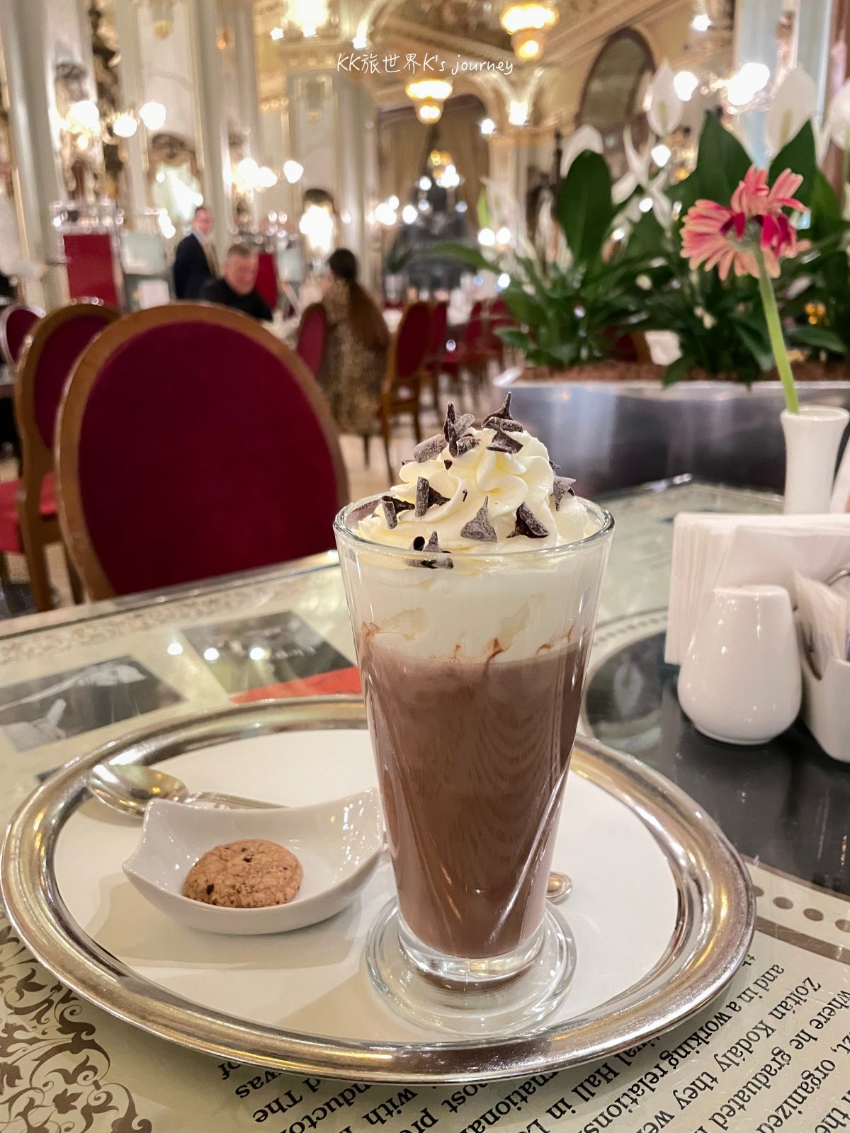 至於這裡的餐點好不好吃呢?我只有在這邊喝過茶,所以不能給予評價。但之前點過巧克力和果汁,價格是真的挺貴的。一杯巧克力加鮮奶油要價2800福林(8,5歐元),因為在其他地方喝過濃郁不甜膩的巧克力,所以這杯顯得遜色許多。第二次來點了葡萄柚汁,一杯記得也是要5歐元,而且很小一杯。婆婆則點了柳橙汁,原本服務生還信誓旦旦和我們說為新鮮現打,但一喝發現帶有澀味,或許是當天製作的,但絕對不是現點現做。還好我的葡萄柚汁還滿好喝的,所以婆婆直接放生柳橙汁,改和我喝一樣的。