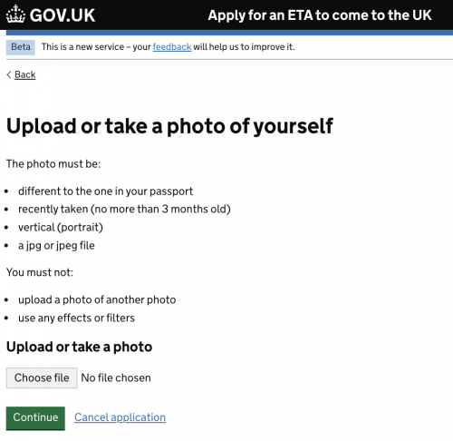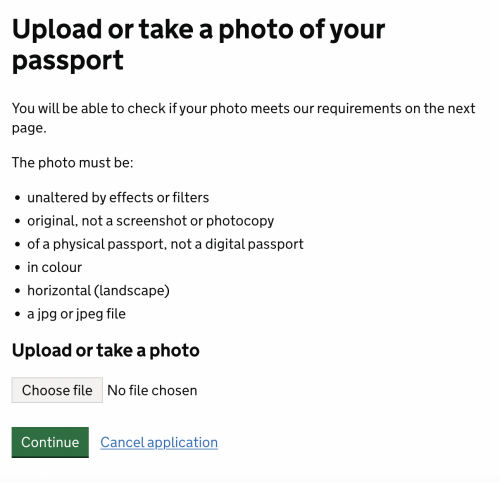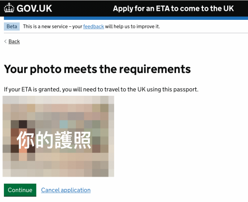 護照是要上傳你要帶去英國玩的那一本,有雙重國籍或即將換新護照的朋友要留意。護照拍攝須清晰不失焦、彩色、亮度均勻沒反光。如果選擇用電腦操作線上申請,檔案需為jpg或jpeg。如下圖所示。