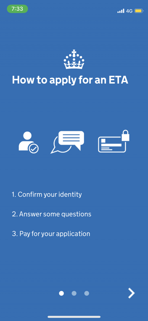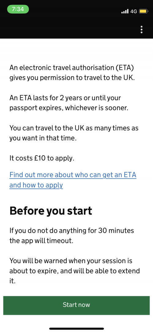 英國政府官網表示,最簡單也是最快的方法就是下載UK ETA app,並說申請流程約10分鐘可搞定。但我自己測試下來,至少需要20分鐘。如果對英文沒有太多把握的朋友,就得更仔細閱讀內容,會花更多時間。不過以下我會將申請流程的每一個步驟都寫出來,這樣大家在申請時就可以參考,不用太擔心喔!