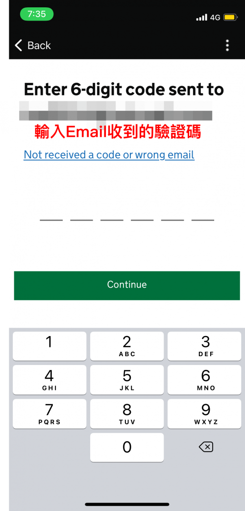 填寫申請人Email,接著就到Email收取驗證碼,再回到app上輸入即可。