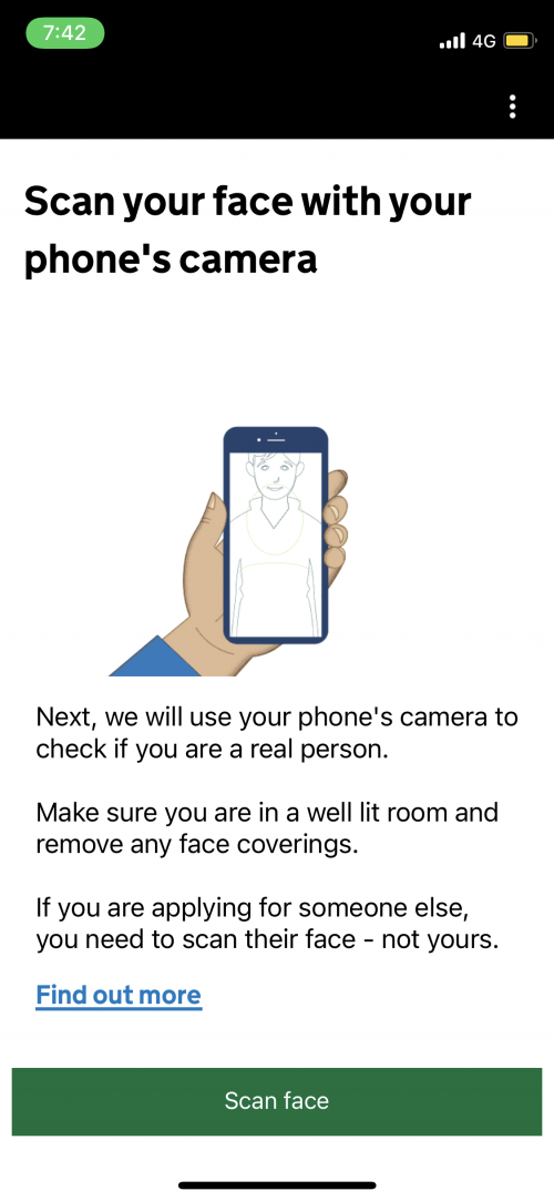 大概是想確保申請人不是假帳號,所以申請當下必須先掃描自己的臉,畫面會出現一個橢圓框,方便大家對臉的位置。完成後才會需要上傳個人照。