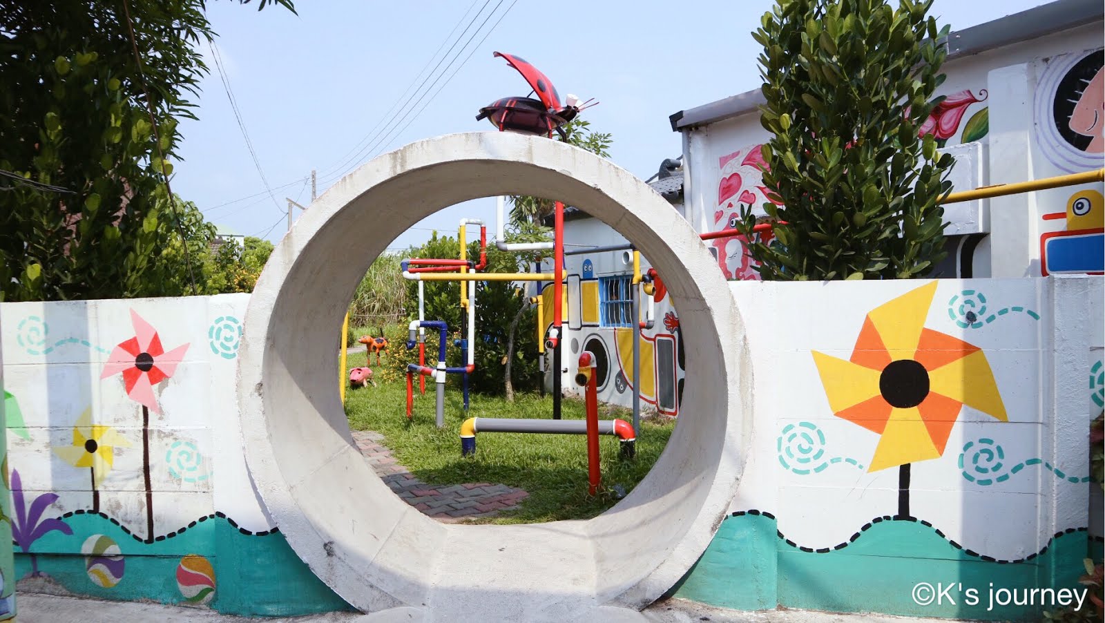 四年前,原本平凡無奇的巷弄,在藝術家和當地國小生的妝點下,搖身變成鄉內唯一,比較可以拿來說嘴的觀光景點「愛溪口秘密通道」(笑)。以卡通《愛麗絲夢遊仙境》為改造發想,短短400公尺的巷子處處有驚喜。