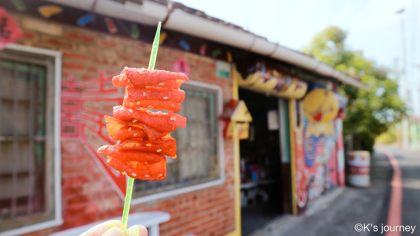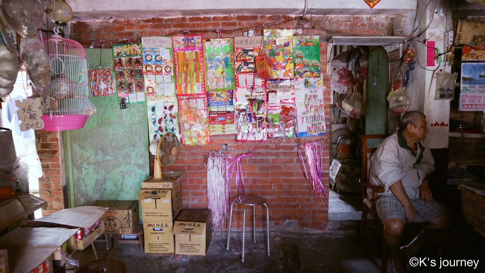 沿著彩繪牆來到有60幾年歷史的柑仔店,默默守護這裡的,是高齡80多歲的施阿嬤。阿嬤的兒子,郭大哥,從小在柑仔店長大,每天有吃不完的零食。(覺得羨慕)